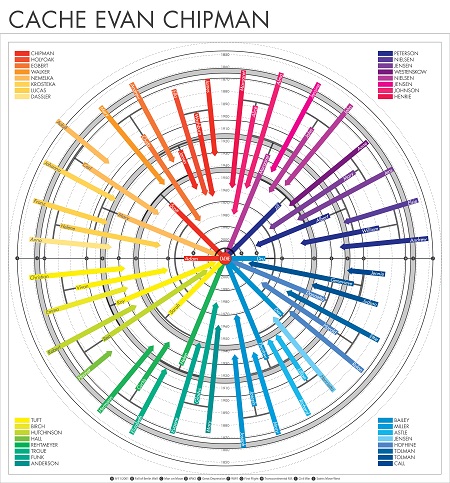 A bright and beautiful diagram of your ancestors lives (not just their names). Each arrow represents a lifetime, showing you when they were born, married, and died.