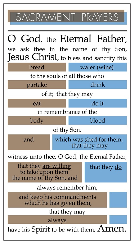 A clear comparison of the sacramental prayers of the LDS Church highlighting similarities and differences.